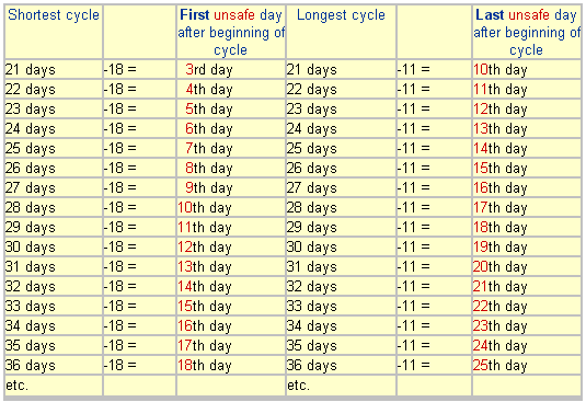 HOW TO DETERMINE THE "UNSAFE" DAYS