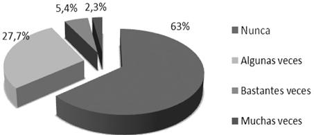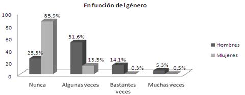 Respecto al uso de la pornografía en sentido general, el 36 % de los jóvenes dijo utilizarla entre algunas y muchas veces (ver gráfico 1), encontrándose diferencias significativas en función del género, la orientación sexual y la edad.