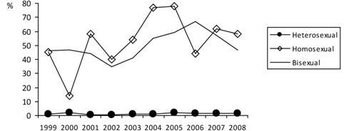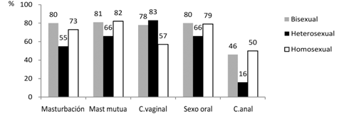 Respecto al género, si bien algunos autores afirman que la diversidad sexual no resulta siempre significativa (Petersen & Hyde, 2010), el estudio ha revelado diferencias en cuanto a la realización de prácticas sexuales con personas del mismo sexo. En este sentido, si bien hombres y mujeres presentan oscilaciones a lo largo de los años evaluados, con significación estadística, los primeros informan con mayor frecuencia el haber mantenido relaciones homosexuales. Con todo, cabría afirmar cómo el porcentaje de personas que en nuestra sociedad han tenido relaciones homosexuales es considerable, especialmente entre los hombres. Asimismo encontramos una diversidad de orientaciones sexuales en la que la homosexualidad y bisexualidad representa a entre el 5 y el 10% de la población general.