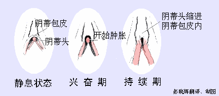 Once a certain level of excitement has been reached, the clitoris retracts under the clitoral hood or foreskin, and thus becomes inaccessible to direct stimulation by the woman or her sexual partner. (In the past, it was not always understood that this retraction of the clitoris indicates an increase, not decrease, of sexual excitement).