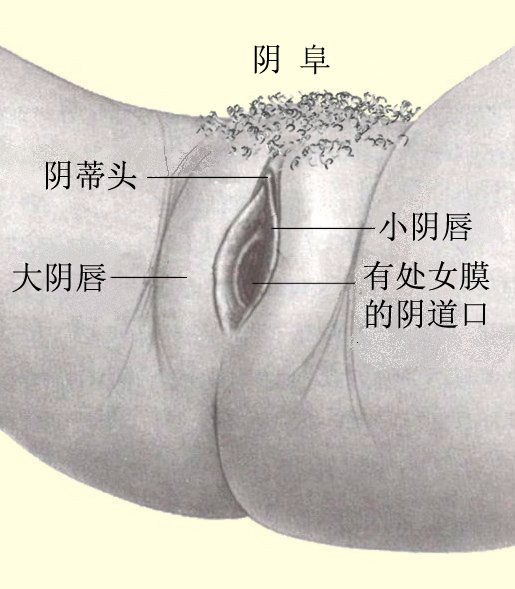 女性外部性器官 女性外部性器官由陰阜、大陰唇、小陰唇、陰蒂頭和陰道口所組成。這些結構全部統稱為陰戶(vulva,拉丁語