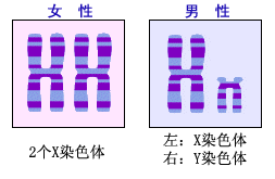 人體細胞含46條染色體,其中的2條決定著一個人的性:女性有兩條X染色體(44+XX);男性有一條X染色體和一條Y染色體(44+XY)。然而,卵細胞在成熟和準備受精之前,她減少了一半的染色體(結果是:22+X)。同樣的,精子在達到完全成熟之前,他也只有一半的染色體(結果是:22+X或22+Y)。在受/授精期間,保留那一半染色體的卵子和精子發生融合,形成一個新的完整細胞。所以,這個新細胞可能含有44+XX或44+XY染色體。因此,新細胞將會要麼發育成女性個體,要麼發育成男性個體。但是,在胚胎早期,我們在外觀上區分不了男女個體。 |