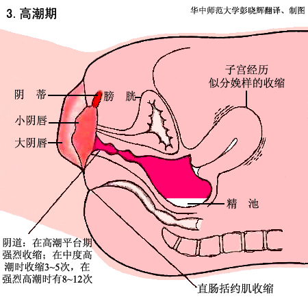 Orgasm (gr. orgasmos: lustful excitement) is the sudden release of muscular and nervous tension at the climax of sexual excitement. The experience represents the most intense physical pleasure of which human beings are capable and is basically the same for females and males. An orgasm lasts only a few moments and is felt very much like a seizure or rather a series of convulsions which involve the whole body and soon lead to complete relaxation.