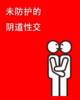 偶遇的性伴可能在不知不覺中感染上HIV/AIDS。所以,與他們的未受保護的陰道性交隱含著高感染風險,尤其對於“接受體液”的性伴一方風險更大。蒙BZgA(Cologne)惠允。 |