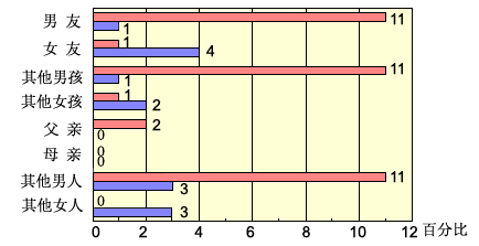 本圖表顯示受到各種人員性騷擾的小於18歲的男女青少年的百分比。