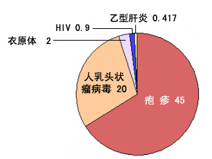 美国主要性传播疾病流行状况估算(单位:百万) 资料来源:联合国艾滋病联合规划暑/世界卫生组织,美国:HIV/AIDS和性传播疾病感染流行病状况清单.2002年更新,美国疾病控制中心网站.追踪隐藏的流行病:2000年美国性传播疾病发展趋势