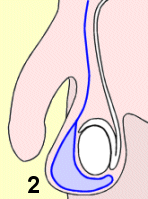 1 Normal scrotum 2 non-communicating hydrocele 3 communicating hydrocele