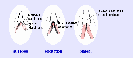 Lors de l’augmentation de l’excitation sexuelle, le gland du clitoris se rétracte sous le prépuce.