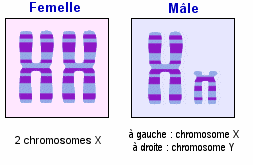 Nous venons de voir que chaque cellule humaine possède 46 chromosomes dont 2 sexuels. Chez la femme, on observe ainsi la combinaison 44+XX, et chez l’homme 44+XY.
