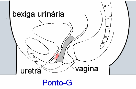 O ponto-G Enquanto que relativamente poucas mulheres “ejaculam”, muitas apresentam um certo ponto sensitivo, um núcleo de tecido que rodeia a uretra, que pode ser sentido e estimulado através da parede anterior da vagina. Este tecido (que provavelmente é idêntico ou pelo menos relacionado com o sistema de glândulas uretrais) ingurgita sob acção da estimulação intensa e depois contribui para um orgasmo particularmente intenso. Anatomicamente, esta área sensitiva é actualmente conhecida por “ponto de Grafenberg” (ponto-G) de acordo com o ginecologista germano-americano Ernst Grafenberg, que pela primeira vez o descreveu em 1950. |