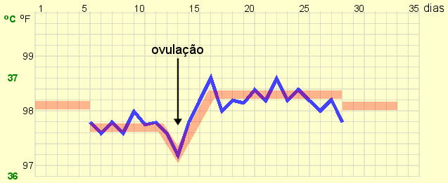 Temperatura basal A fim de ganhar pelo menos alguma certeza, a mulher pode usar duas estratégias diferentes (e muitas mulheres que praticam o "método do ritmo" podem realmente usar os dois ao mesmo tempo): Primeiro, pode tirar a sua temperatura corporal com um termómetro todas as manhãs antes de sair da cama. Isto é a chamada a temperatura basal. Antes de cada ovulação, existe uma ligeira queda na temperatura do corpo seguido por um ligeiro aumento para o resto do ciclo menstrual. Ao comparar a temperatura de registos de pelo menos seis meses anteriores, a mulher pode calcular o tempo da sua próxima ovulação. Uma segunda maneira de encontrar o dia "inseguro" consiste em manter um registo calendário dos ciclos menstruais durante pelo menos oito meses.