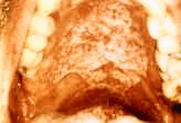 e a língua (abaixo) mostram os sintomas da candidíase oral, uma infecção fúngica oportunista.