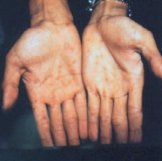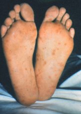 Rash cutâneo sifilítico Acima: palmas das mãos Abaixo: plantas dos pés