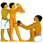 Symbols of Initiation (da esquerda) 1. Mascara usada numa cerimonia de iniciação tribal na Africa. 2. Circuncisão de um jovem adulto por um ancião no Egipto. 3. Bar mitzvah Judeu 4. Confirmação cristã.
