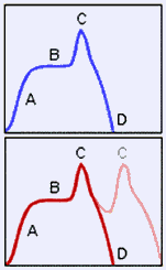 Resposta sexual Nos humanos, a resposta sexual segue o mesmo padrão básico (fases) em ambos os sexos - machos (azul) e fêmeas (vermelho): A = Excitação, B = Planalto, C = Orgasmo, D = Resolução. Contudo, existem algumas variações possíveis no padrão feminino, por exemplo, orgasmos múltiplos.