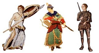 Travestismo e guerra (da esquerda) Aquiles, vestido como uma rapariga, descobriu as armas (mosaico romano antigo) Hua Mulan preparando-se para a batalha (pintura chinesa antiga) Joana d’Arc vestida com a sua armadura (pintura contemporanea) |