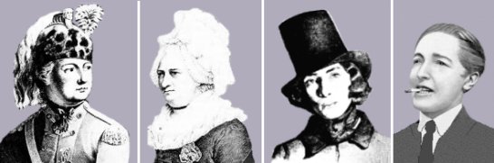 Switching gender roles (da esquerda) O Chevalier d’Eon de Beaumont (1728-1810), um diplomata francês, foi um espadachim de renome. Fisicamente homem, viveu algumas vezes como homem (esquerda) outras vezes como mulher (direita). Ele mostrou a sua destreza de esgrima em ambos os papéis. George Sand (1804-1876), nascido Amantine-Aurore-Lucile Dupin de Francueil, adotou um nome de homem como escritora, e por algum tempo escanddalizou os seus contemporaneous vestindo-se como homem e fumando cigarros. Radclyffe Hall (1880 -1943), uma autora britanica de um romance lésbico ”The Well of Loneliness”(o Bem da Solidão), cultivou uma aparência masculina. |