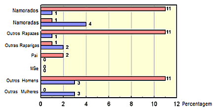 Assedio Sexual na Finlandia o grafico mostra a percentage de adolescents femininas e masculinos assediadas por varias pessoas. Fonte: O. Kontula and E. Haavio-Mannila, Sexual Pleasures - Enhancement of Sex Life in Finland, 1971-1992, Chapter 11. Para o texto completo deste inquerito, clique aqui. |