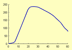 Curva da media do nível de estrogénio nas raparigas desde a infância até à idade adulta (0…60 anos) Estrogens excreted in urine, mg per 24h