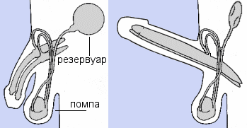 пещеристые тела полового члена вводятся двойные гидравлические протезы. Помпа,