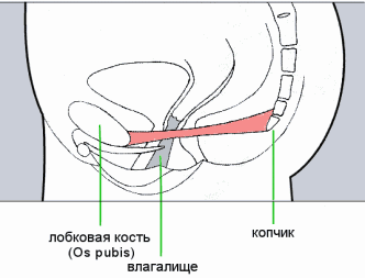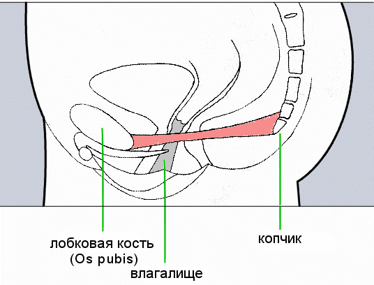 который проходит от лобковой кости впереди и до копчика, или заканчивается с
