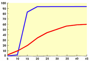 Мастурбация у женщин и мужчин с детства до среднего возраста Совокупное процентное соотношение женщин (красная кривая) и мужчин (синяя кривая), мастурбирующих до оргазма, относительно возраста. Источник: данные Кинзи и др., 1948