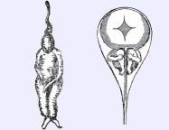 (Izquierda) El propio dibujo de Leeuvenhoek de los espermatozoides que vio. (Derecha) Dibujos hechos por otros después del descubrimiento de Leeuvenhoek. Antes del descubrimiento de los espermatozoides muchos científicos creían que la cabeza de cada uno de ellos contenía una persona completa pequeña "preformada" (homúnculo).