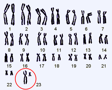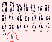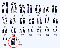 De izq. A derecha: 1. Hombre típico (un cromosoma X y uno Y) 2. Mujer con Síndrome de Turner (solo cromosoma X) 3. Hombre con el Síndrome de Klinefelter (dos cromosomas X y un cromosoma Y). Para ver la imagen más grande, pulse sobre cada cariograma.