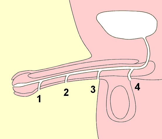 Hipospadia: Cuatro de sus posibles formas. Pulse sobre la figura.