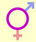 Símbolo Botánico que representa a una planta de doble Sexo - una combinación de los símbolos para hombre y para mujer. Acá, el elemento femenino se muestra en rojo, el Masculino en azul y su círculo común en morado (púrpura) . Este símbolo se usa ahora frecuentemente para representar la intersexualidad humana.