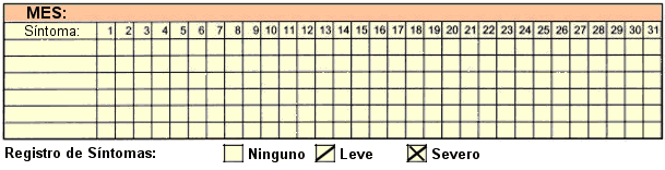 Para poderse percatar de los problemas premenstruales, una mujer puede llevar un diario o registro en el cual ella anote sus síntomas en los días que aparecen. El grado de severidad puede indicarse o marcarse por una simple línea en la palabra “leve” o una cruz en la palabra “severos”. Este diario permite a la mujer ganar conciencia y control sobre su SPM.