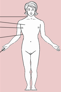Cubito valgo (deformidad del codo) hace ver los brazos un poco hacia arriba. Dedos pequeños y manos y pies hinchados.
