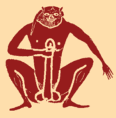Arriba: Mujer usando dos penes artificiales (dildos) para masturbarse. Abajo: Satyr masturbándose (Después de antiguas vasijas griegas pintadas)