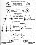 A csirasejtek termelése Egy here többszáz kis részlegből áll, amelyek hajszálvékony, sűrű csatornácskákat tartalmaznak. Ezekben képződnek a csirasejtek vagy spermiumok, vagyis itt történik a spermatogenezis. A folyamat a pubertással kezdődik és az egész életen át tart. A spermiumtermelés három lépésben történik: