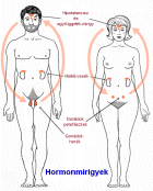 A hormonok (görög hormaein= serkenteni) kémikus jelzőanyagok, amelyek a belső elválasztású (endokrin) mirigyekből közvetlenül a vérkeringésbe kerülnek és különböző testi folyamatokat serkentenek. Az emberi szexualitás szempontjából mindenekelőtt a következő mirigyek fontosak: 1. Az agyalapi mirigy (hipofizis), 2. A női, ill. férfi gonádok (petefészkek, ill. herék) és 3. A mellékvesék.