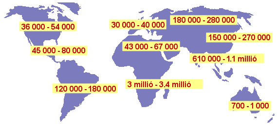 A HIV-vel 2003-ban újonnan fertőződött felnőttek és gyermekek becsült aránya Összesen: 4.2 millió - 5.8 millió