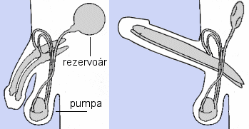 Hidraulikus rendszerek Egy kétrészes, hidraulikus rendszert építenek be a péniszbe, a corpora cavernosát helyettesítendő. A herezacskó melletti pumpa lehetővé teszi a péniszprotézis feltöltését, vagy kiürítését, s így az erekció létrehozását, vagy megszűntetését.