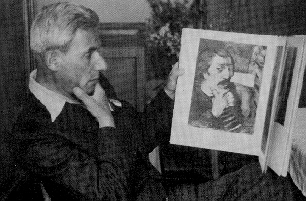 | 1. Herbert Lewandowski reading his biography of Paul Gauguin (ca. 1950). [31K] |
