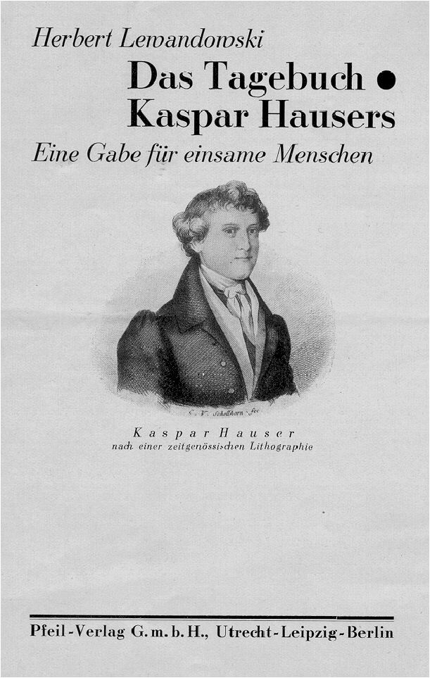 3. Leaflet advertising Lewandowki's cycle of poems "The diary of Caspar Hauser: A Gift for the Lonely" (1927 pp.90). [75K] |