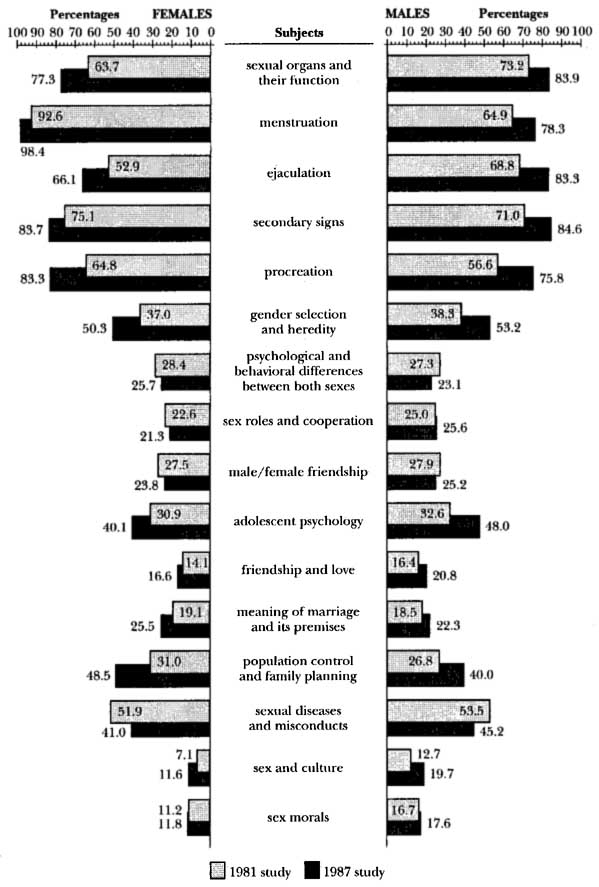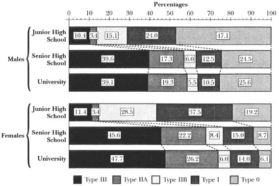 Education in information selection systems or value systems - moral education, particularly in relation to sexual activities - has become a major necessity in formal and informal education. Likewise, education in sexual behavior, not in terms of instruction in a behavioral code but in terms of providing understanding of the stages of psychosexual development, will benefit the development of each individuals sexuality. Likewise, sexuality education is expected to enhance education for parenting. All of these needs share a common base as consequences of modernization. The current national Course of Study of the Ministry of Education does not include education for either value systems or for establishment of self- and sexual identity. Perhaps these aspects of education belong to the realm of family education. Unfortunately, in con temporary Japan, the national administration of public education is so well developed that the general public has almost forgotten the responsibility of family education. This is causing some serious social problems, particularly when parents expect the public schools to assume complete responsibility for teaching all the code of ethics, including sexual behaviors.