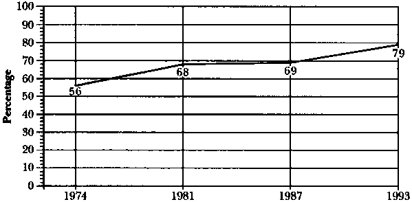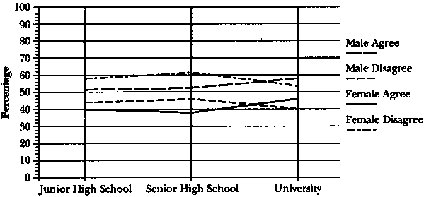 In a 1982 opinion poll conducted by the Prime Ministers Office, 70 percent of the Japanese surveyed agreed with the statement that Japanese women still believe a womans place is in the home and that little girls should be brought up to be ladylike. In a 1989 multinational survey by the same agency on the theme Men should work and women should stay home, 71 percent of the Japanese women either completely or somewhat agreed with the premise (see also discussion of Figure 36 in Section 5B). Critics suggest that respondents to government surveys may be inclined to give answers they believe the authorities want to hear, so it is important to balance these government survey results with similar surveys in the private sector. In one such survey conducted by a noted cosmetics firm, four fifths of the women found working women admirable, and 70 percent rejected the notion that a woman should quit her job after marriage (Bornoff 1991, 453). Still, the argument that traditional sex roles are strongly valued in Japan is persuasive when one considers that only 20 percent of Japanese firms offer female employees a years maternity leave, in most cases without pay, and that day-care facilities are woefully inadequate. (One should recall, however, that the record of American corporations is not much different on these issues, and certainly lags far behind the policies in some European countries.)