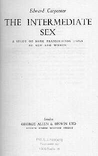 An English Forerunner of "Gay Liberation" The social and sexual reformer Edward Carpenter (1844-1929) was one of the first English authors to demand social recognition of same-sex relationships. As early as 1896, he addressed this then still controversial topic in his book "Love's Coming of Age". His collection of essays "The Intermediate Sex" (1908), shown on the left, is obviously influenced by the writings of German sexologists. The portrait on the right shows Carpenter at the age of 43. |