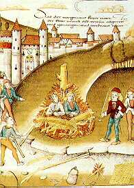 Death penalty for a male couple In medieval Christian Europe, same-sex contacts were considered "abominations" and often punished by death as "sodomy". The contemporary picture shows the public burning of two male lovers in Zurich 1482. © Zurich Central Library.