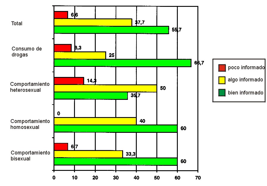 (6.6%) se sintió desinformada respecto al SIDA. No obstante, parece que, en realidad, la mayoría está, a duras penas,