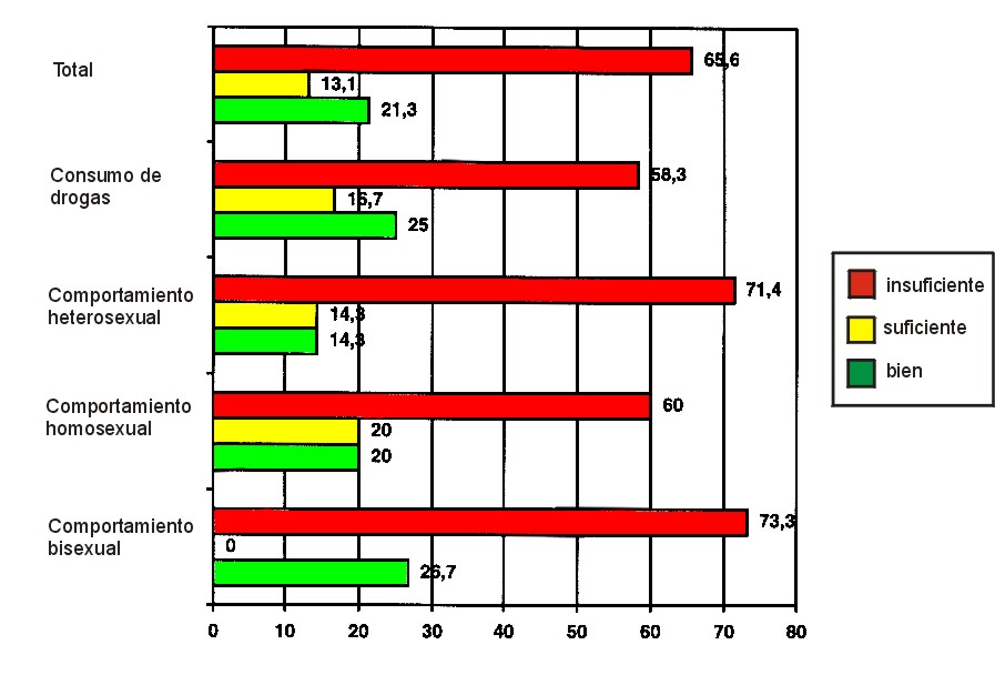 comparación con los otros grupos destinatarios (usuarios de drogas: 66.7%, comportamiento homosexual: 60%, comportamiento bisexual: