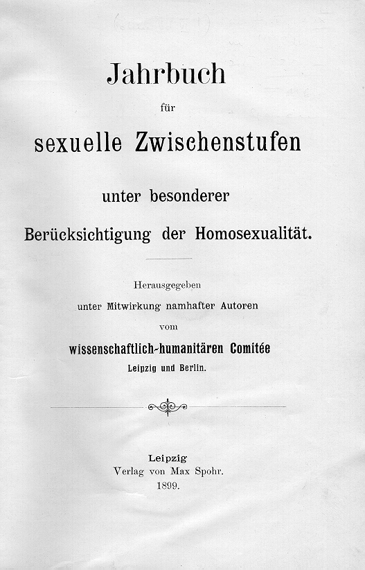 después, en 1899, Magnus Hirschfeld comenzó a editar el "Jahrbuch für sexuelle Zwischenstufen" (Anuario de las
