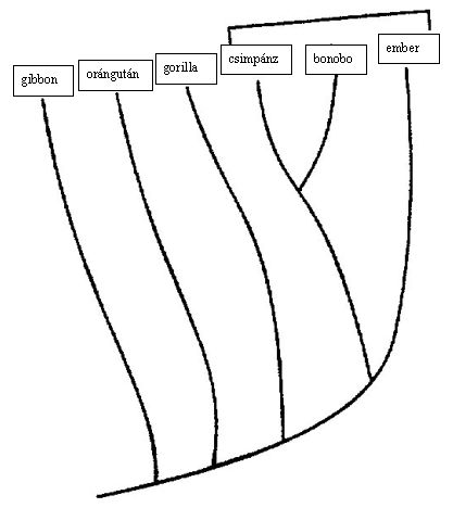 Erre vonatkozó ismereteinket különböző tudományokból, többek közt az evolúcióelméletbő, a zoológiából az etológiából és a paleoantropológiából meríthetjük. Nagy segítséget jelenthet számunkra Norbert Kluge: A gyermeklét antropológiája (2004, Animula és M.k. Alapítvány) című könyve, amely a legújabb tudományos adatok alapján mutatja be a „szexuális antropogenezist” is. Kluge professzor szerint a majmokat régóta az ember állat-testvéreinek tarthatjuk, mert számos emberi vonásuk van. Az emberek és az emberszabású majmok köztudottan a primátákhoz, vagyis az „uralkodó állatokhoz” tartoznak. A primáták mintegy 70 millió évvel ezelőtt kezdtek szétterjedni a Földön és tovább fejlődni, miután a dinoszauruszok eltűntek, kihaltak. A primáták két alcsoportja közül az egyikbe a nagy, ázsiai emberszabású majmok, főleg az orángután, a másikba az afrikai emberszabású majmok, így a gorilla,, csimpánz, bonobo és az ember tartoznak. Minden primátafaj közös jellemzője, hogy élveszülők, s utódaikat az anya emlőjéből táplálják. Az emberszabásúak törzsfájának eddig legalább négy modellje alakult ki. A napjainkban leggyakrabban emlegetett modell a következő (1.ábra): Az ábra alsó vonala az emberszabásúak közös származási vonala, amelynek első elágazása a gibbonok, a második az orángutánok, majd a gorillák következnek, amelyek kb. 8 millió évvel ezelőtt hagyták el a közös származási vonalat és nem fejlődtek tovább az emberré válás irányába. Az ember legközelebbi rokonai a csimpánzok és a bonobók. Utóbbiak alig 2,5 millió évvel ezelőtt önállósodtak, mint faj. Az ember fejlődési vonalához tehát a bonobók állnak a legközelebb.: genetikai készletük alig 1,6%-ban különbözik az emberétől, hasonlóan a csimpánzéhoz. (Ugyanakkor az ember agya kb. négyszer nagyobb a csimpánzénál.) Az emberszabású majmok nemi élete ösztönvezérelt, bár tanulási folyamatok által is befolyásolt. Ezen a téren is a bonobók (vagy „törpecsimpánzok”) állnak legközelebb az emberhez. Az incesztustabu, vagyis a szűkebb rokonsággal való szexuális kapcsolat tilalma náluk is megtalálható. Egyébként viszont szinte gátlástalanul közösülnek egymással, leggyakrabban szemtől-szembe, egymásra fekve, de a maszturbáció, sőt, a homoszexuális jellegű kapcsolatok is előfordulnak. Párosodási rendszerük „poliginandriának” mondható, vagyis szexuális szabadosságra, promiszkuitásra utal. Tartós és kizárólagos párkapcsolatok nincsenek. A nőstények nemcsak a peteérés körüli időszakban, hanem bármikor készek párzani, vagyis nem csak a fajfenntartás érdekében (ösztrusz), hanem az élvezet kedvéért, vagy egyéb célok érdekében is szeretkeznek. Például, mert a szexuális viselkedés békítő szerepet játszhat a csoportban támadt konfliktusok esetén. A bonobo-nőstények sajátos módon uralkodó helyzetben vannak csoportjukban („matriarchátusban” élnek). Terhességük 8-9 hónapig tart, többnyire egy utódot szülnek és 9-10 éves korukra válnak nemileg éretté. A vizsgálatokból kiderült, hogy a primáták között az embernak van leghosszabb és legvastagabb pénisze (merevedéskor). Ezzel szemben a nagy testű gorilla és az orángután merev pénisze alig 3-4 cm; a kis testű csimpánzé viszont 5-6 cm, a heréje pedig jóval nagyobb, mint az emberé. Ez szorosan összefügg a gyakori nemi élettel, a promiszkuitással és a „spermiumok versenyével”; ami azáltal keletkezik, hogy amikor több hím közösül egy nősténnyel, a spermiumok versengve igyekeznek a petesejt felé. Az ember viszonylag kis heréiből az következik, hogy filogenezise során aligha fordulhatott elő olyan mértékű promiszkuitás, mint a csimpánzoknál és bonobóknál (bár a gyakori partnerváltás az emberre is jellemző). Az eddigi vizsgálatok egyértelműen azt mutatták, hogy a nagy, emberszabású majmok szexuális viselkedése már sokkal kevésbé ösztönös, vagyis genetikailag programozott, mint más állatfajoké. De a fajfejlődés során fokozatosan bekövetkező ösztönredukcióról leginkább H.F. Harlow és E.J. Suomi (1970) majomkísérletei győzték meg a kutatókat. E kísérletek lényege, hogy a kiválasztott kismajmokat megszületésük után izolálták, elkülönítették az anyjuktól és fajtársaiktól, gondos táplálással felnevelték, s közben figyelték viselkedésüket. A testi fejlődésükkel nem is volt semmi baj, ám a felnőttkori viselkedésük már erősen különbözött a társaik között nevelkedő állatokétól. Valamit ugyan javult a helyzet, ha az anyát egy felnőtt majom szőrös anyaggal bevont drótvázának közelében tartották, de amikor később visszaengedték a többi majom közé, képtelen volt az önálló életre és a szexuális viselkedésre. Nem működött együtt egyetlen szexuális partnerrel sem, tehát nem jött létre a párzás. Az így nevelt nőstény majom mesterséges megtermékenyítés esetén nem tudott anyaként viselkedni a megszült gyermekével: nem táplálta, nem gondozta, így az újszülött hamar elpusztult. Következésképpen sem a szexuális, sem az anyai viselkedés nem ösztönös az emberszabású majmoknál. A viselkedés organizációja tehát nem biológiailag programozott, hanem csak a társas környezetben tanult szabályozó rendszer révén alakul ki. Buda Béla (1997) szerint „a szexuális viselkedés majmoknál már annyira bonyolult, hogy azt minden egyed a maga fejlődési folyamatában tanulja, sajátítja el. Az elsajátításban... más majmok tevékenységének megfigyelése is szerepet játszik. Emellett a majom játékos próbálkozásai... ugyancsak felfoghatók tanulási ténykedésnek.” (94. old.) Buda (1988) az állati párválasztással kapcsolatban arra is felhívja a figyelmet, hogy „ma