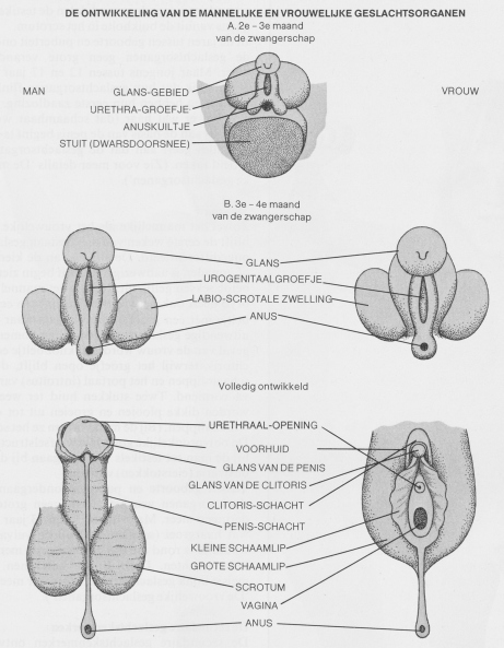 Het anatomisch verschil tussen mannen en vrouwen is niet erg groot. Zelfs hun geslachtsorgaanstelsels lijken sterk op elkaar en zijn in de eerste ontwikkelingsfase niet van elkaar te onderscheiden. Later in de ontwikkeling gaan de mannelijke en vrouwelijke geslachtsorganen elkaar aanvullen, maar ook dan nog is te zien dat ze dezelfde oorsprong hebben. Met andere woorden, hoewel de verschillen in geslachtsorganen (net als alle andere lichamelijke kenmerken van het toekomstige menselijke wezen) al in iedere bevruchte eicel zijn vastgelegd, komen ze slechts langzaam, gedurende een bepaalde periode, tot stand. Een heel enkele maal wordt deze ontwikkeling belemmerd en blijft dan onvolledig. (Zie ‘Misvormingen van de geslachtsorganen’).