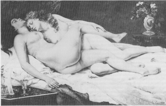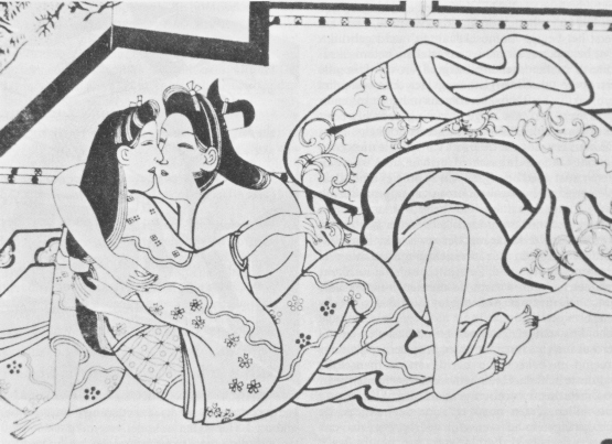 VROUWELIJKE HOMOSEKSUALITEIT INDE JAPANSE EN FRANSE KUNST In vele culturen hebben kunstenaars graag elkaar beminnende vrouwen afgebeeld. Hier een houtsnede van Suzuki Moronoba(17eeeuw)en een schilderij van Gustave Courbet (19e eeuw).